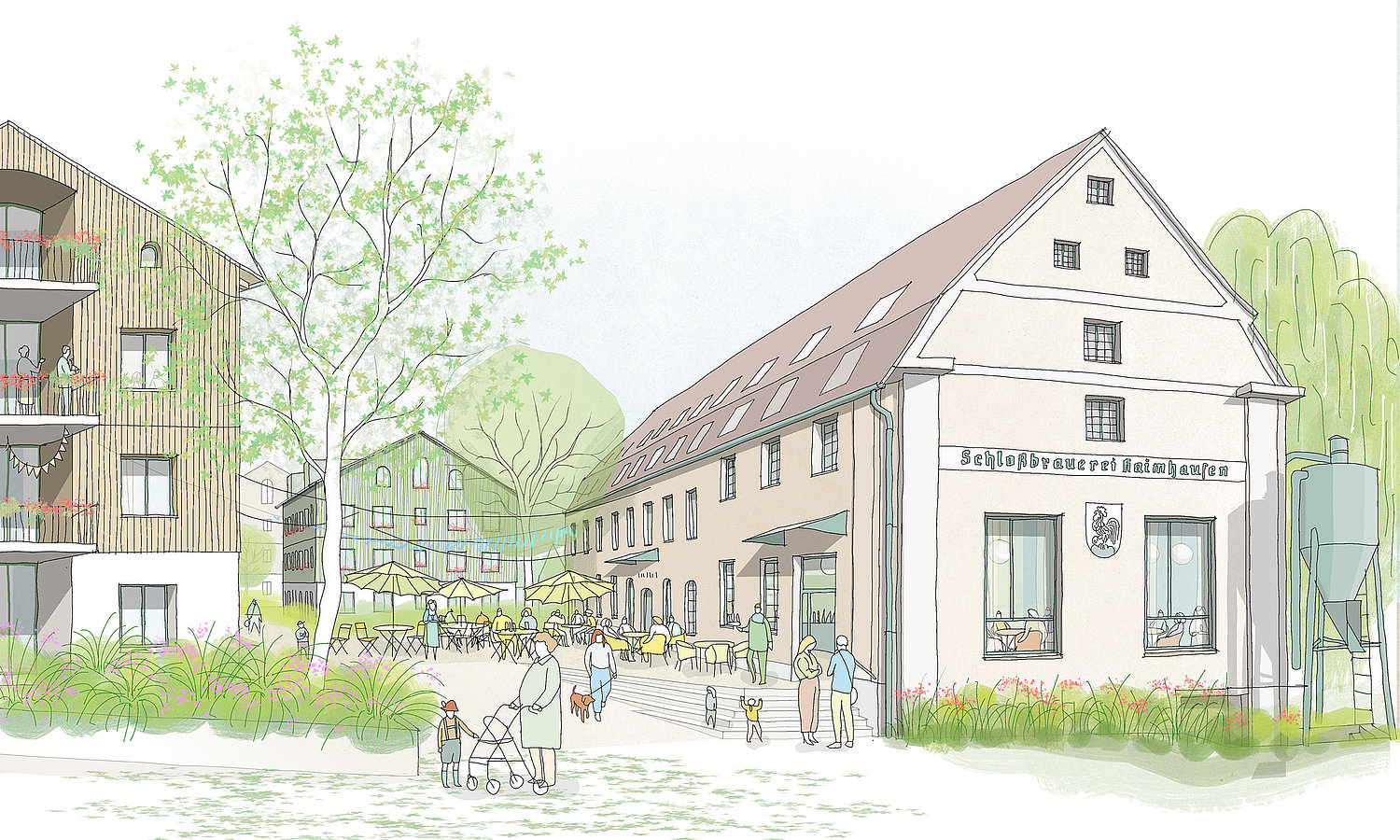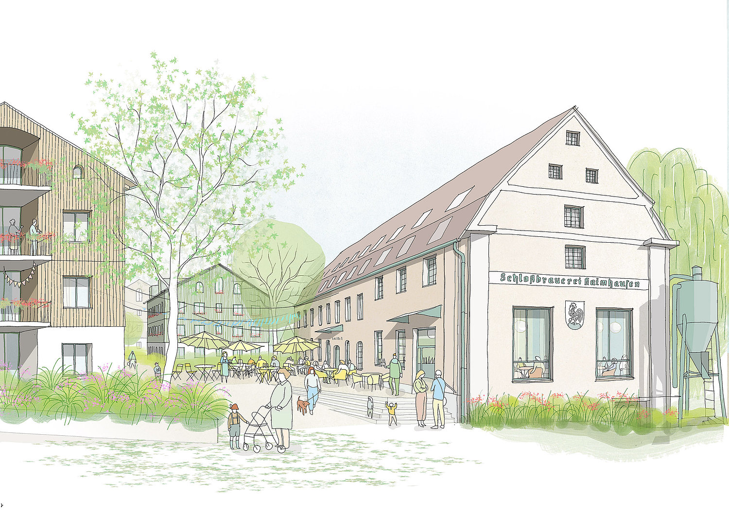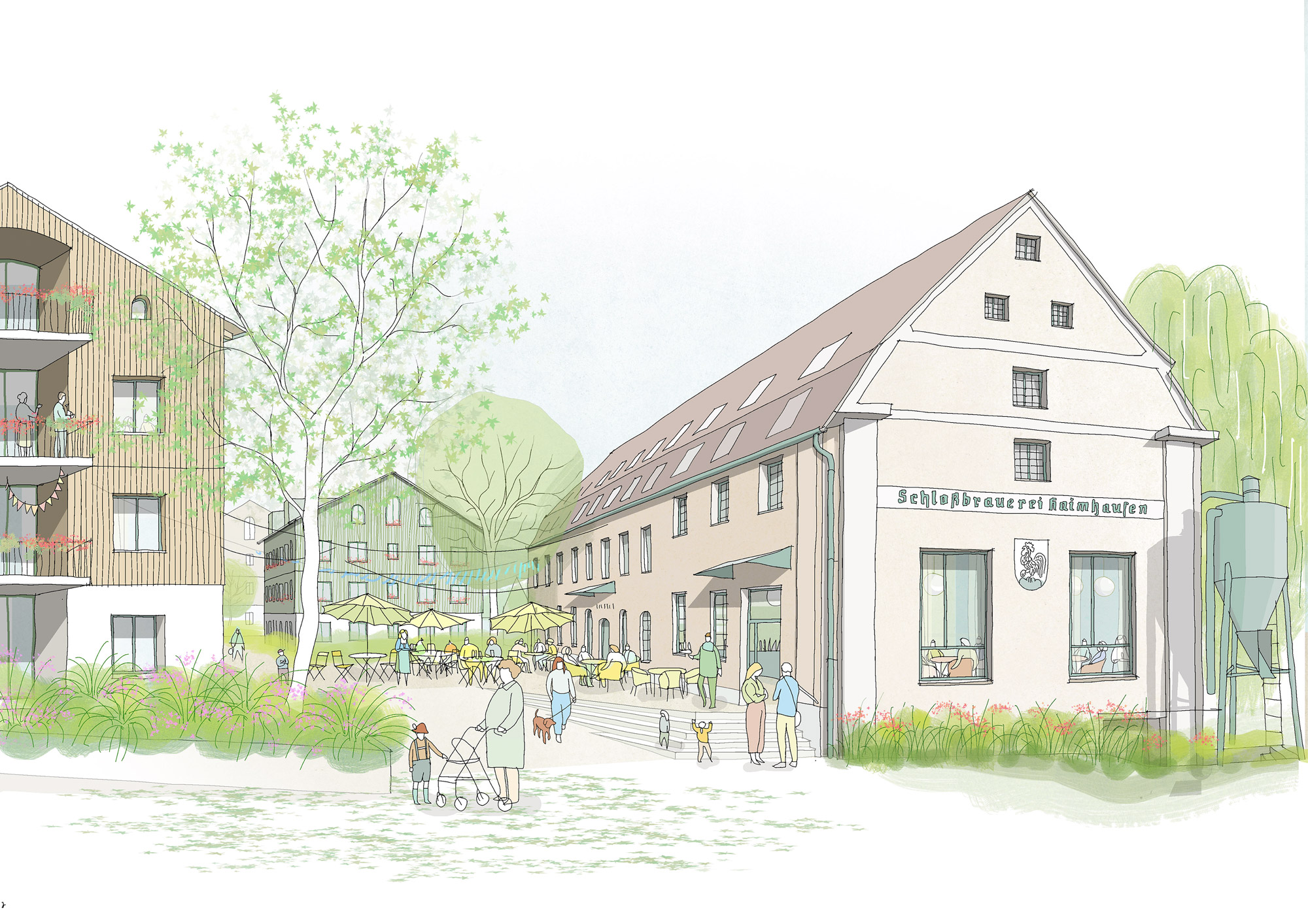 Im Herzen Haimhausens entsteht ein facettenreiches Quartier, das Raum zum Wohnen und Arbeiten bietet, Begegnung fördert und mit kulinarischen Angeboten zum Verweilen einlädt. Unser Ziel ist es, einen Ort zu schaffen, der Alt und Neu, Natur und Mensch harmonisch verbindet. Einen Ort, an dem Menschen gerne zusammenkommen – und in Zukunft auch wieder ein kühles Bier genießen können.